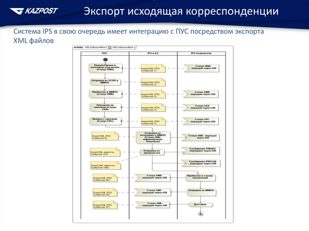 Экспорт исходящая корреспонденцииСистема IPS в свою очередь имеет интеграцию с ПУС посредством экспорта
