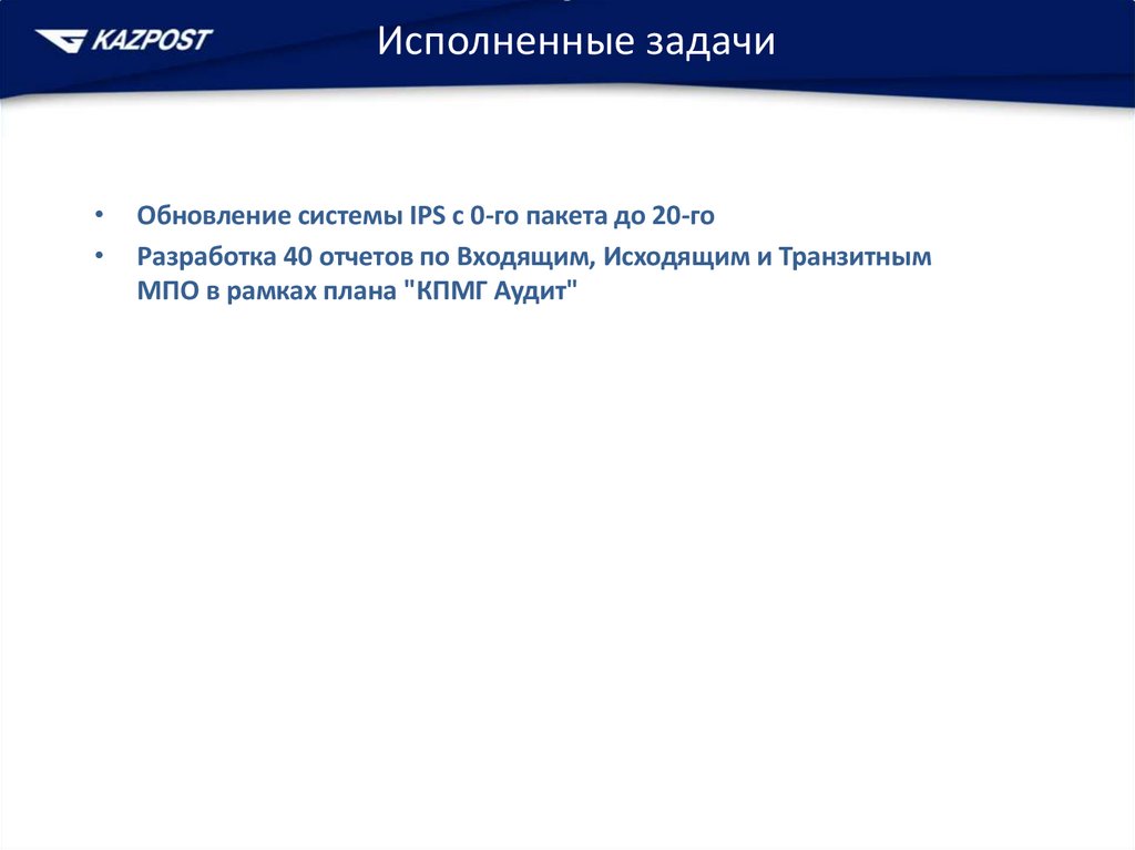 Исполненные задачиОбновление системы IPS с 0-го пакета до 20-го