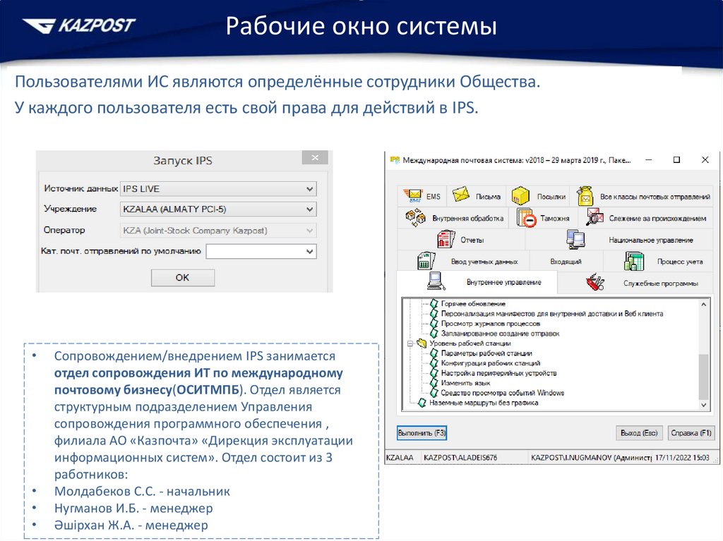 Рабочие окно системыПользователями ИС являются определённые сотрудники Общества.