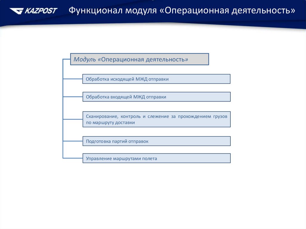 Функционал модуля «Операционная деятельность»Модуль «Операционная деятельность»