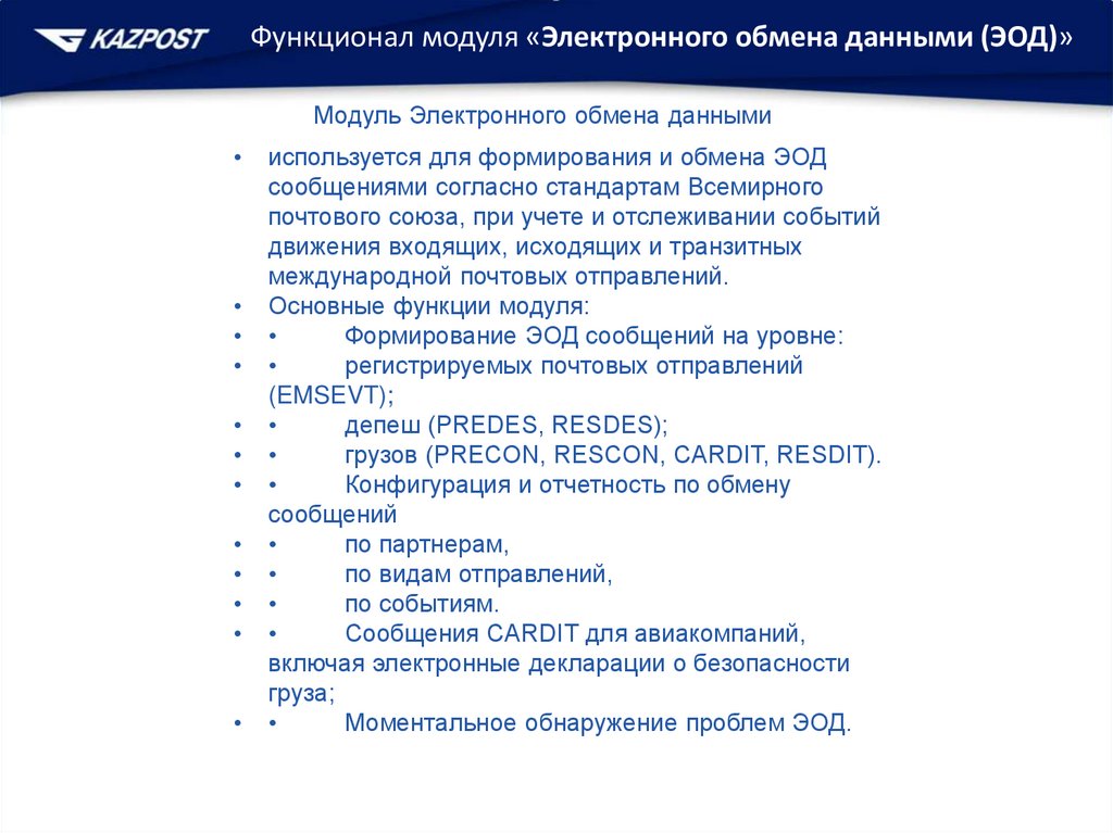 Функционал модуля «Электронного обмена данными (ЭОД)»Модуль Электронного обмена данными
