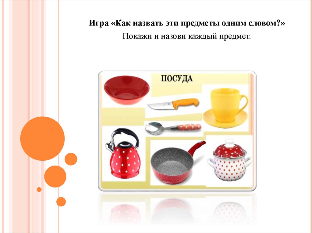 Игра «Как назвать эти предметы одним словом?»Покажи и назови каждый предмет.