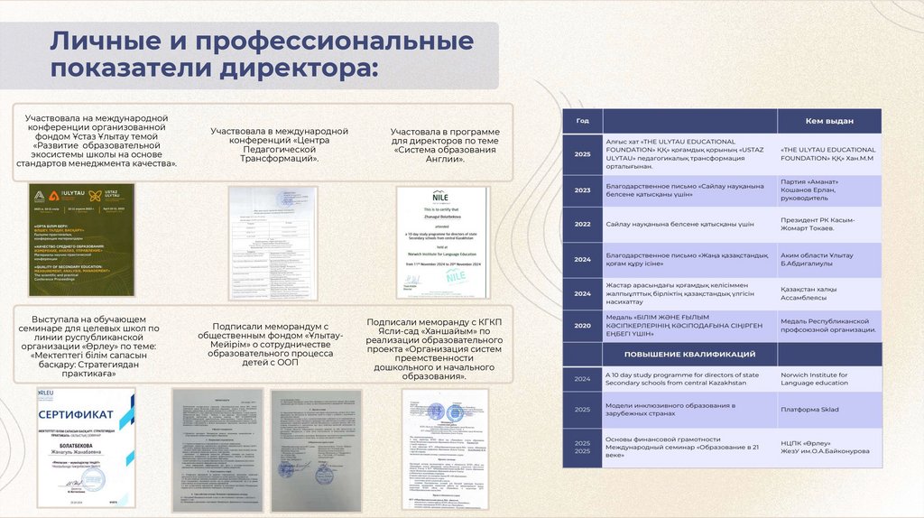 Личные и профессиональныепоказатели директора: