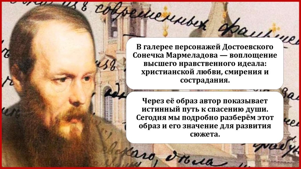 Соня Мармеладова — «великая грешница» — это,бесспорно, нравственный идеал Достоевского в