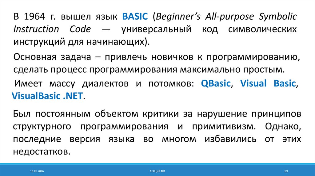 1. История развития языков программированияЯзык программирования определяет набор лексических,