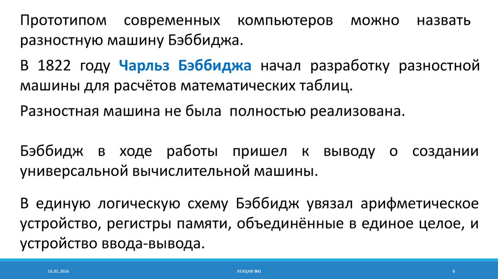 Прототипом современных компьютеровразностную машину Бэббиджа.