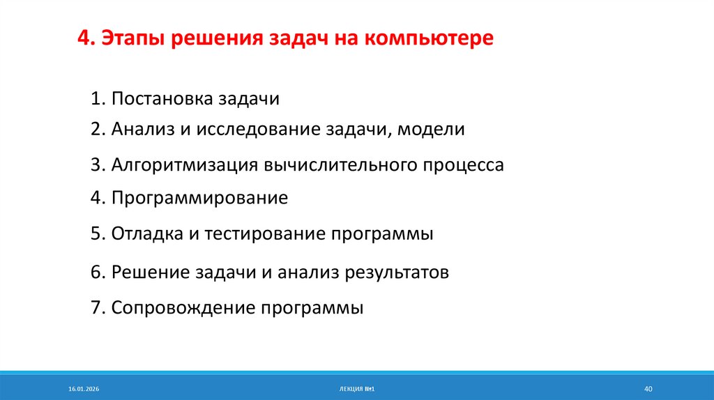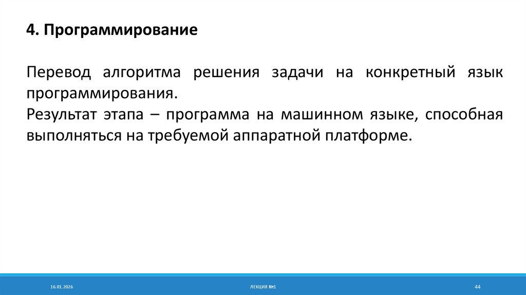 4. ПрограммированиеПеревод алгоритма решения задачи на конкретный язык
