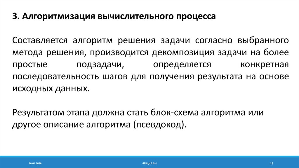 3. Алгоритмизация вычислительного процессаСоставляется алгоритм решения задачи согласно выбранного