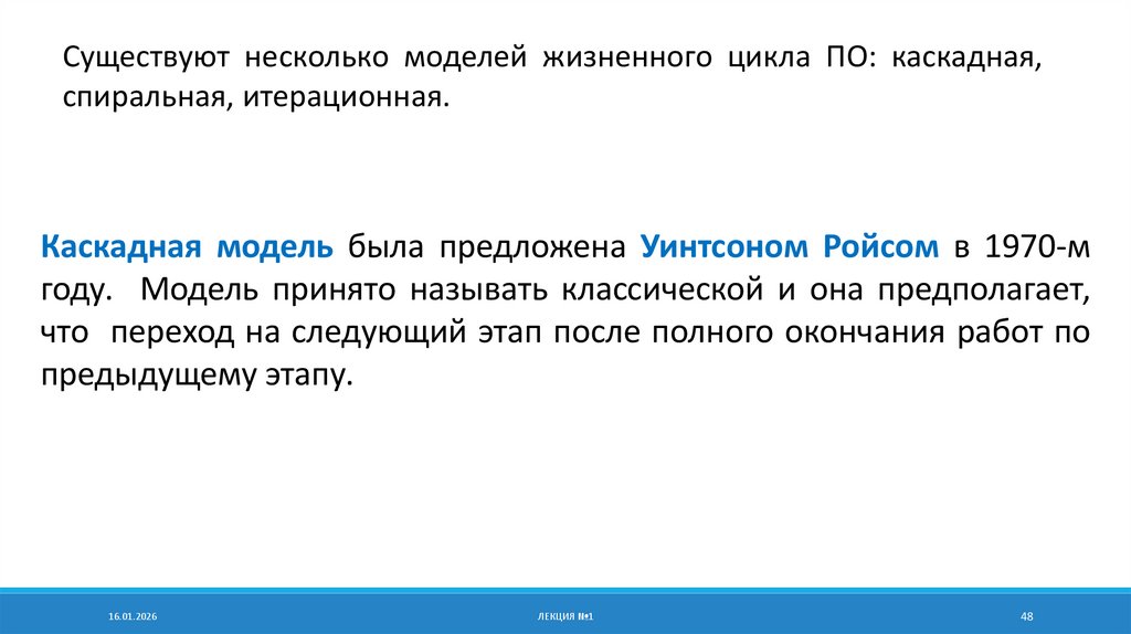 Каскадная модель была предложена Уинтсоном Ройсом в 1970-м