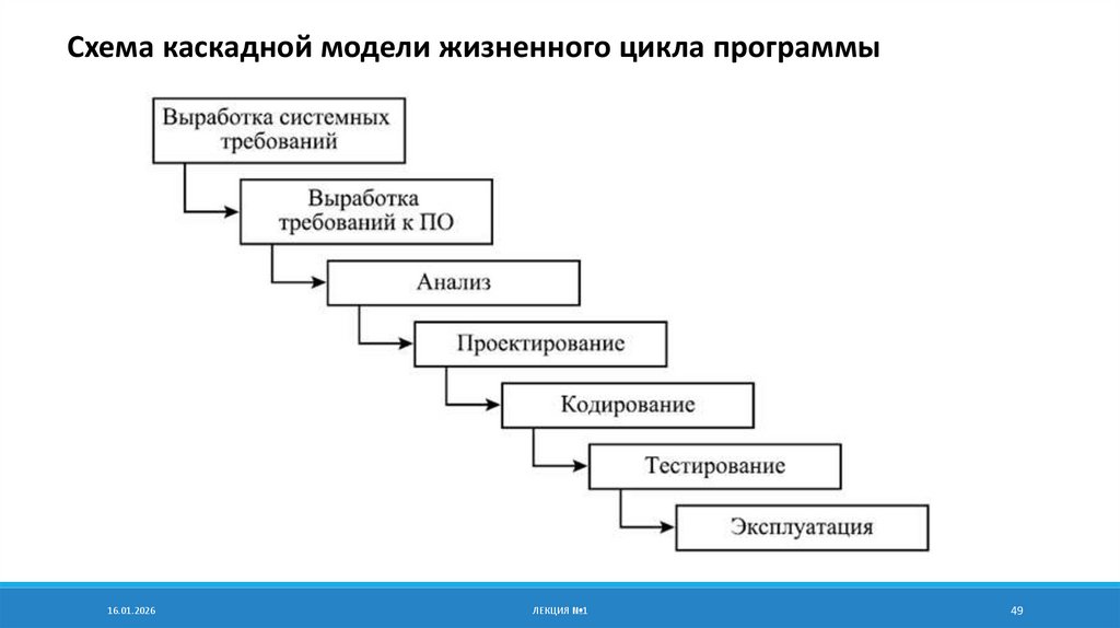Схема каскадной модели жизненного цикла программы16.01.2026