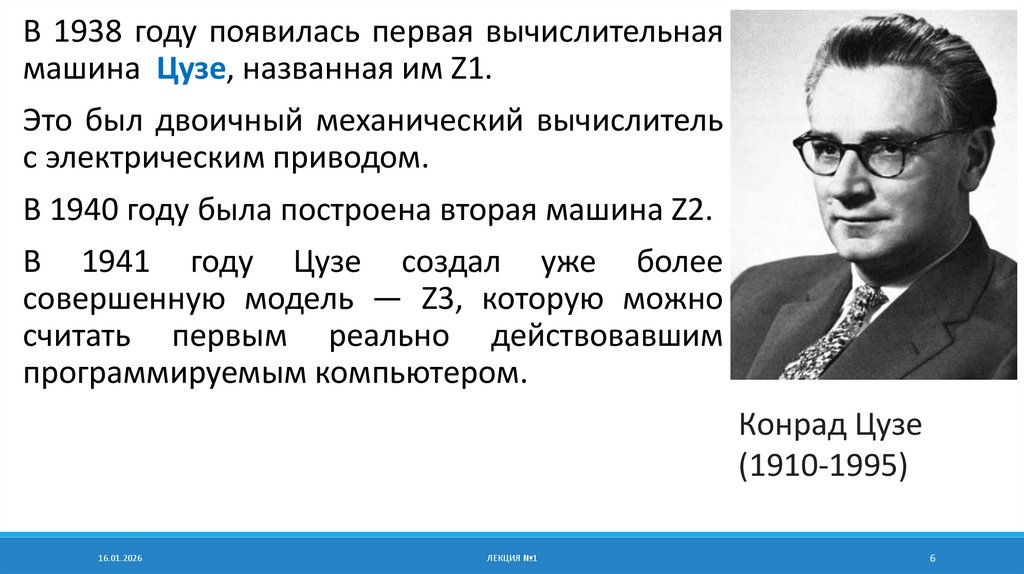 В 1938 году появилась первая вычислительнаямашина Цузе, названная им Z1.