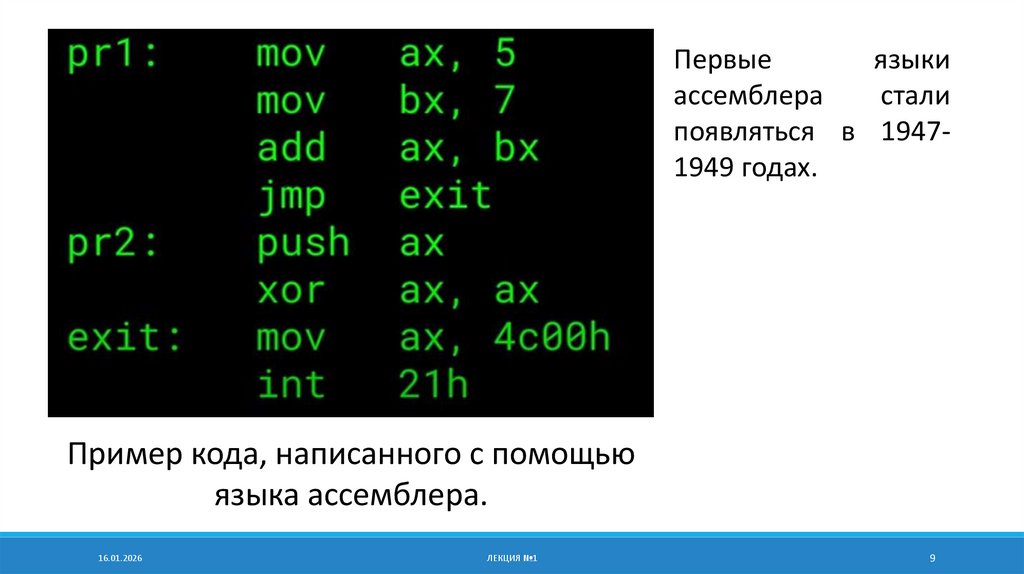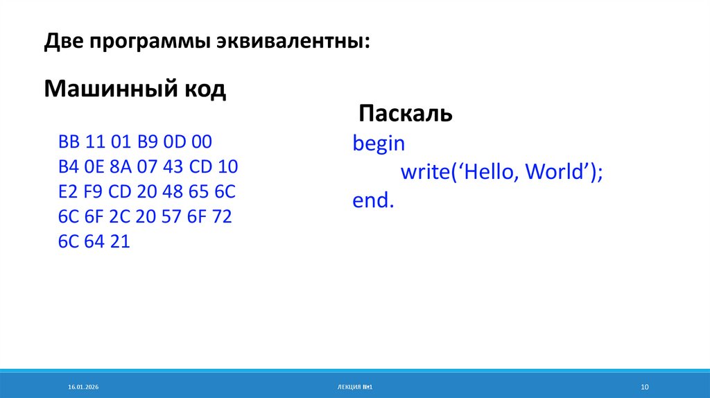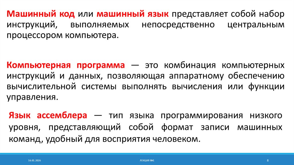 Машинный код или машинный язык представляет собой наборинструкций, выполняемых непосредственно центральным