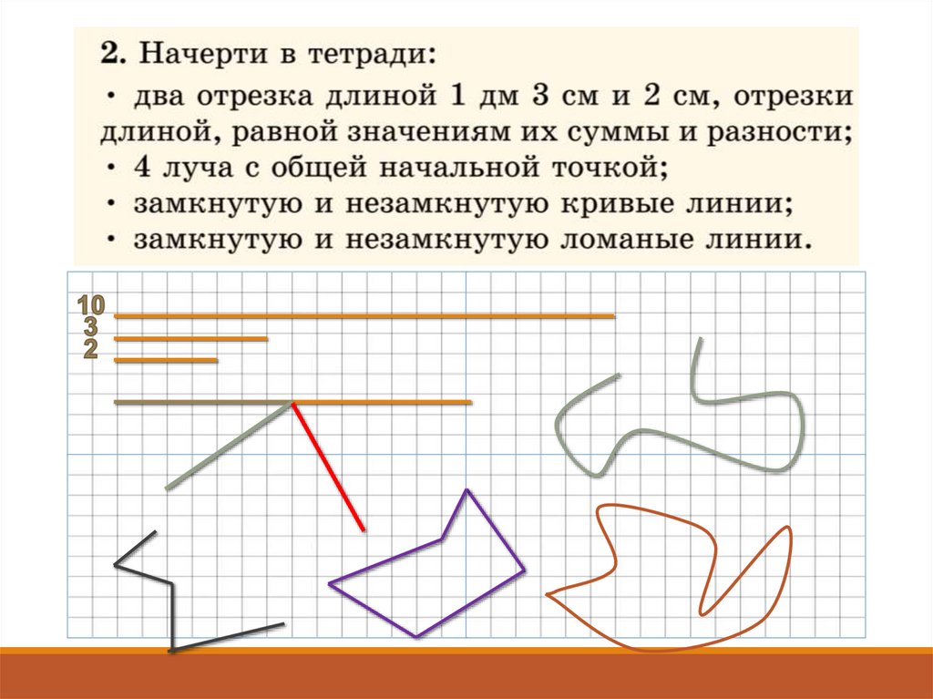 • чертить геометрические фигуры: отрезки, лучи, кривые и