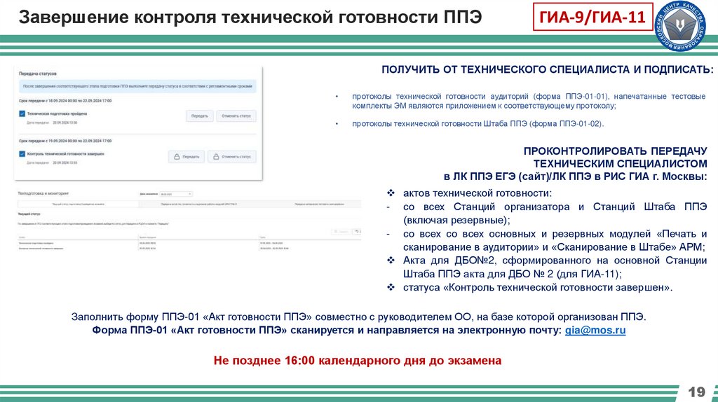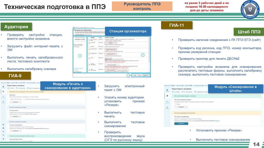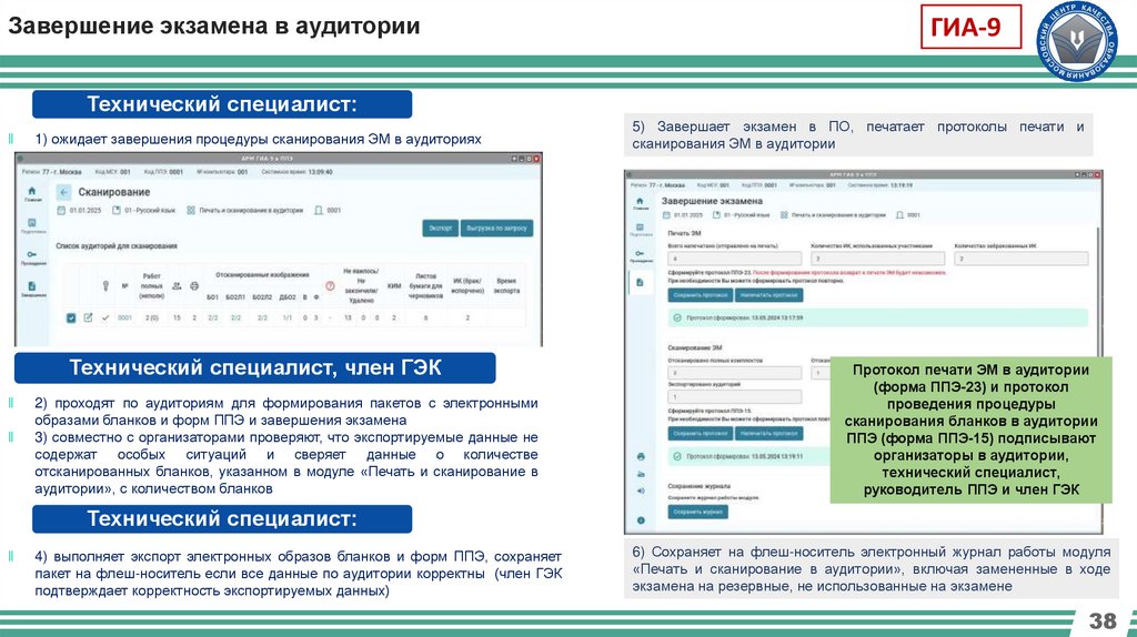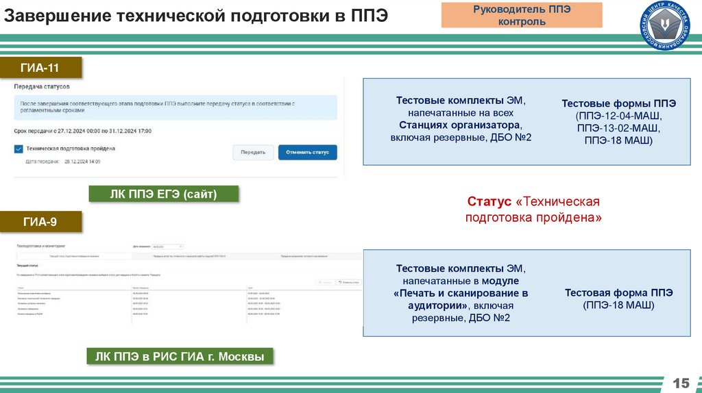 Станции Штаба ППЭ (форма ППЭ-15-01) и электронный журнал работы Станции Штаба ППЭ;