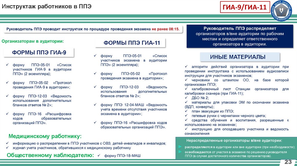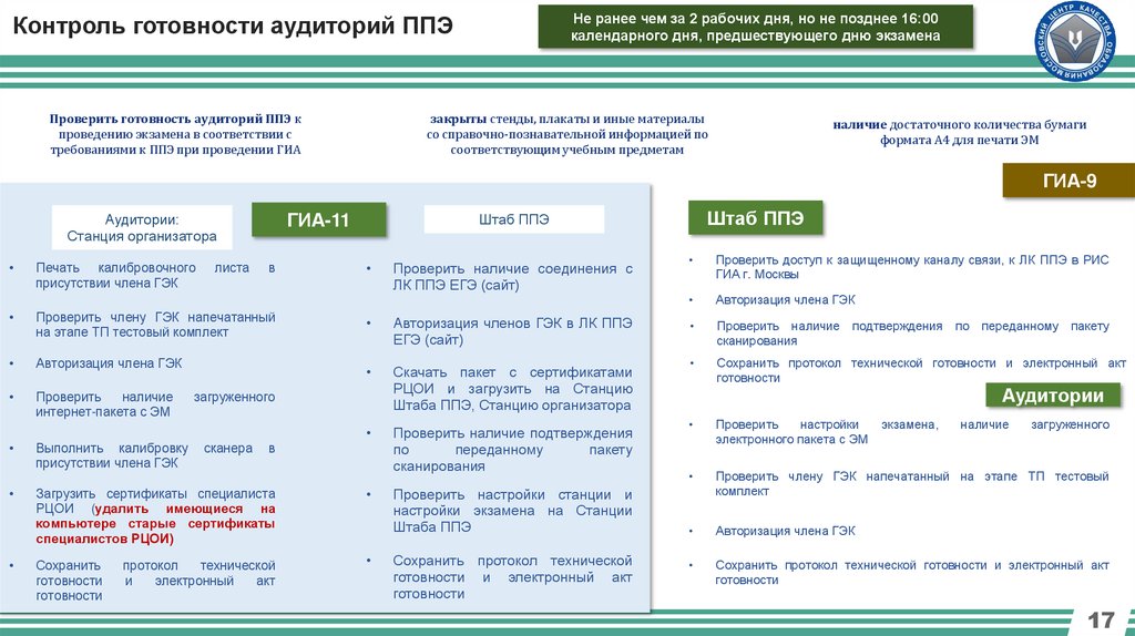 Особенности подготовки ППЭ к ОГЭ по химииГИА-9