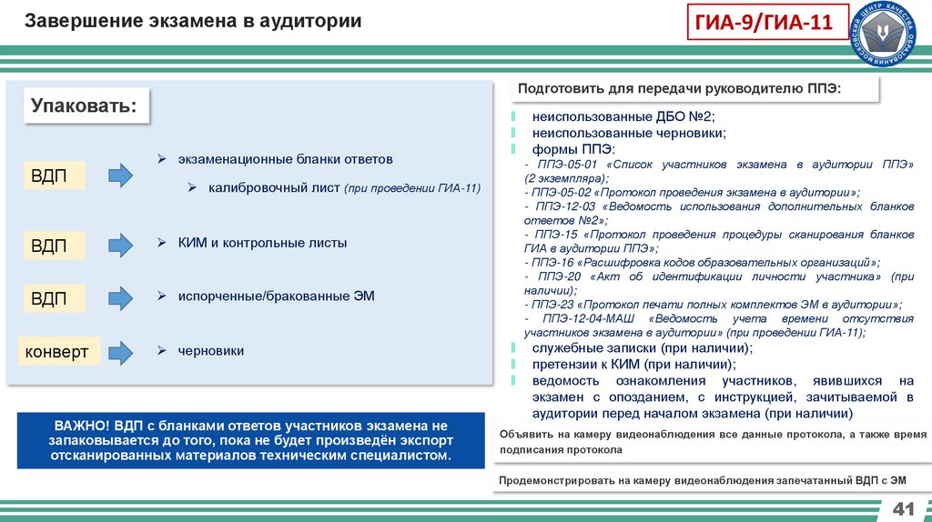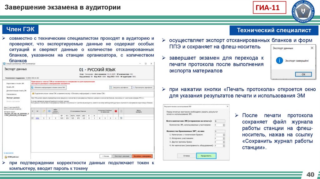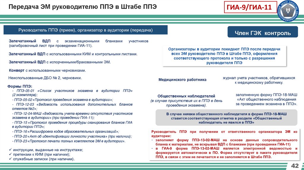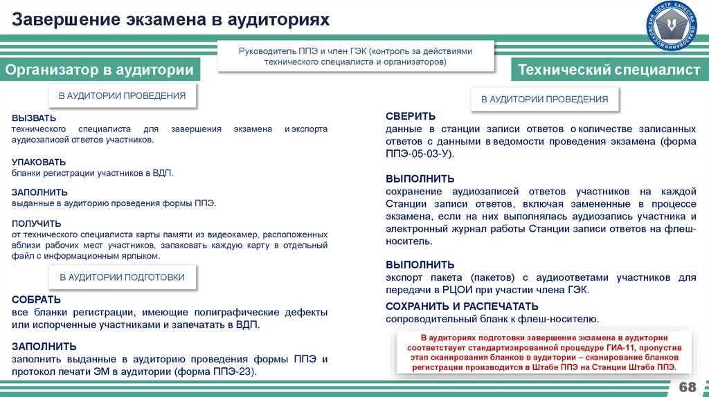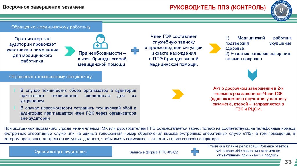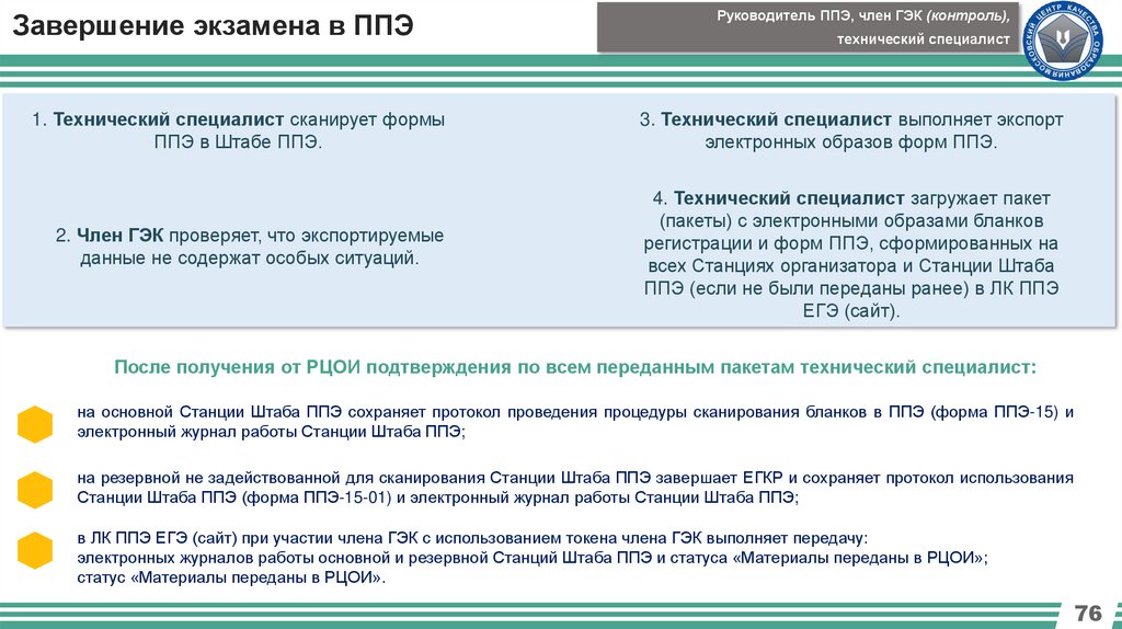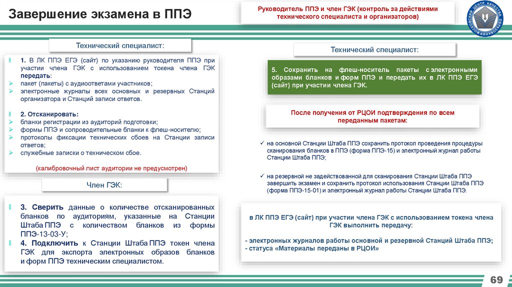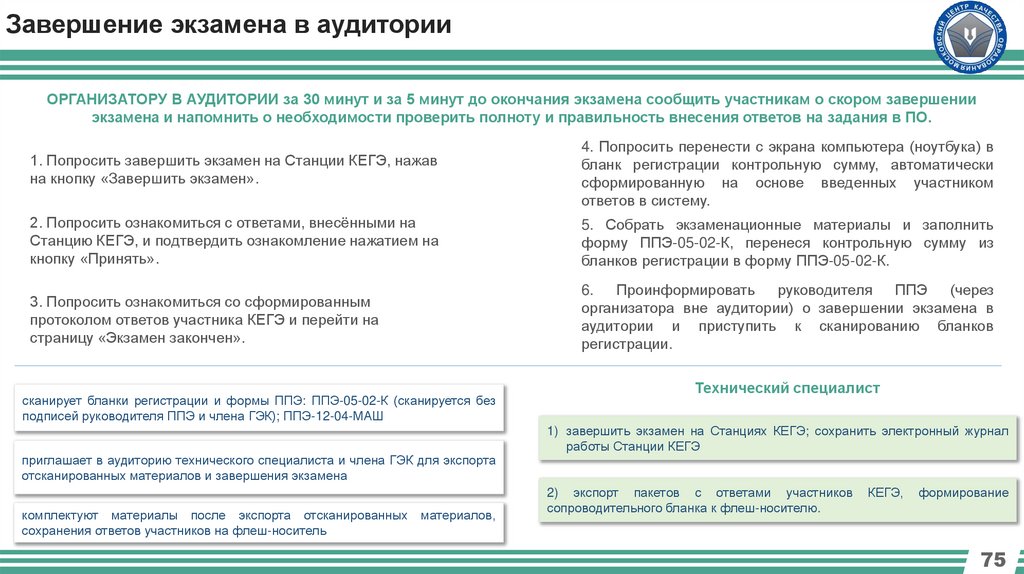 Завершение экзамена в ППЭРуководитель ППЭ, член ГЭК (контроль),