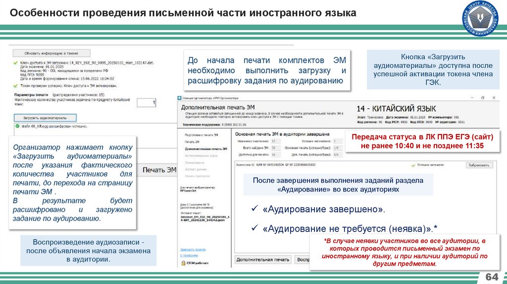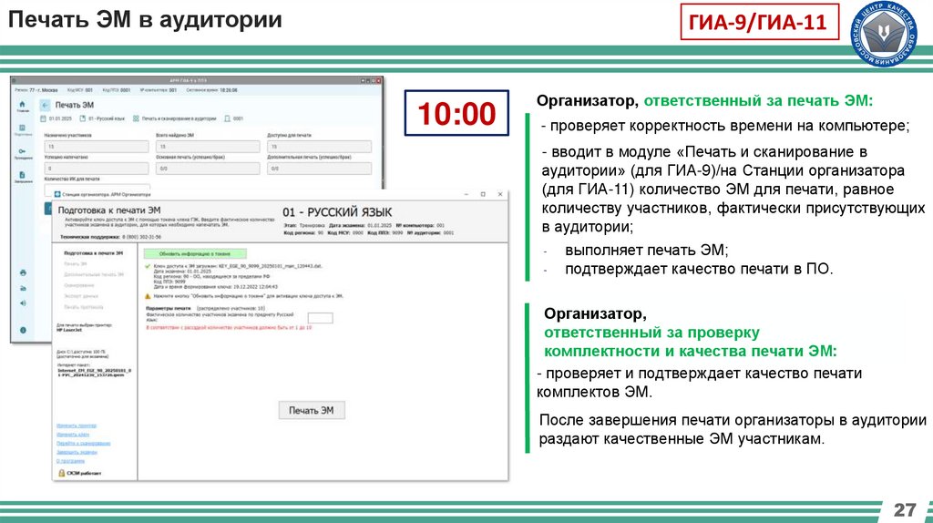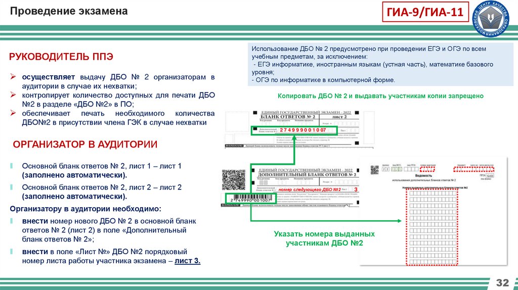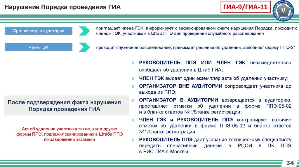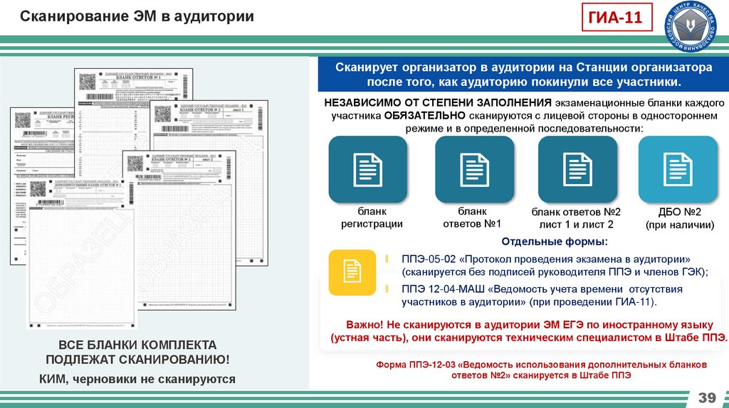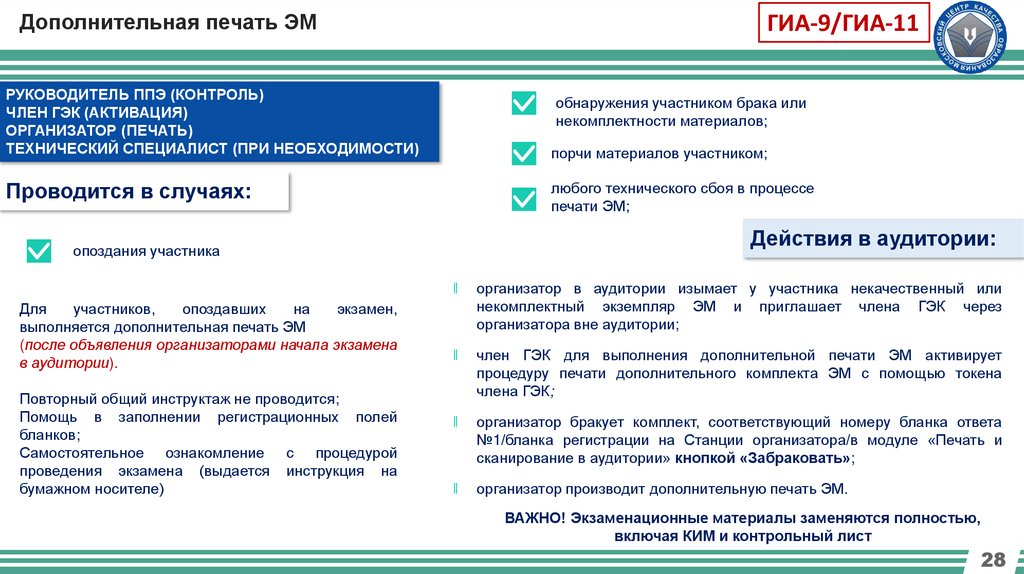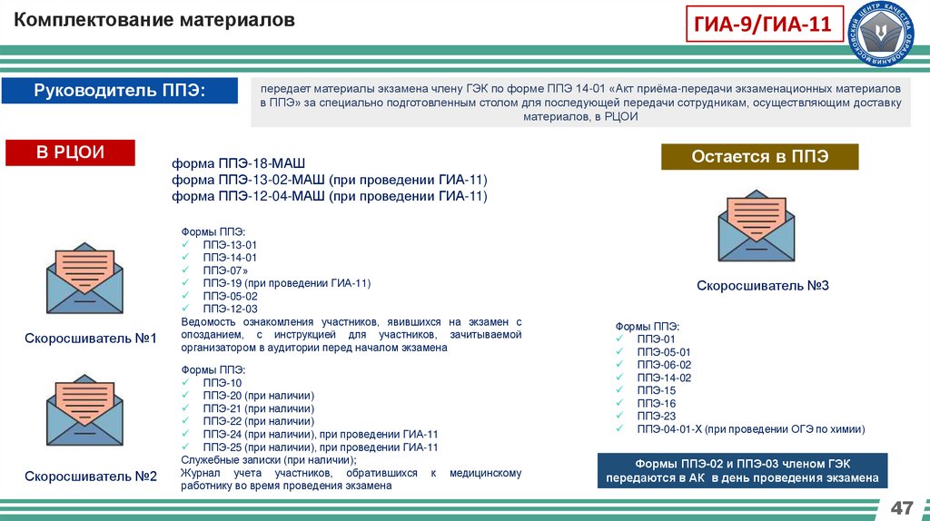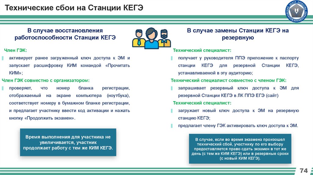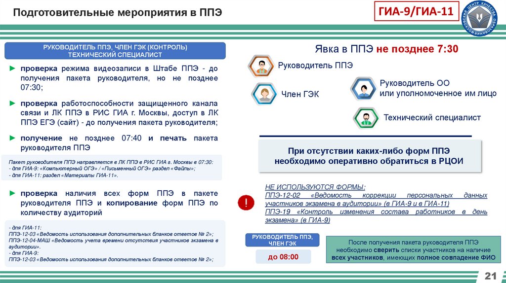 Завершение экзамена в ППЭРуководитель ППЭ, член ГЭК (контроль),