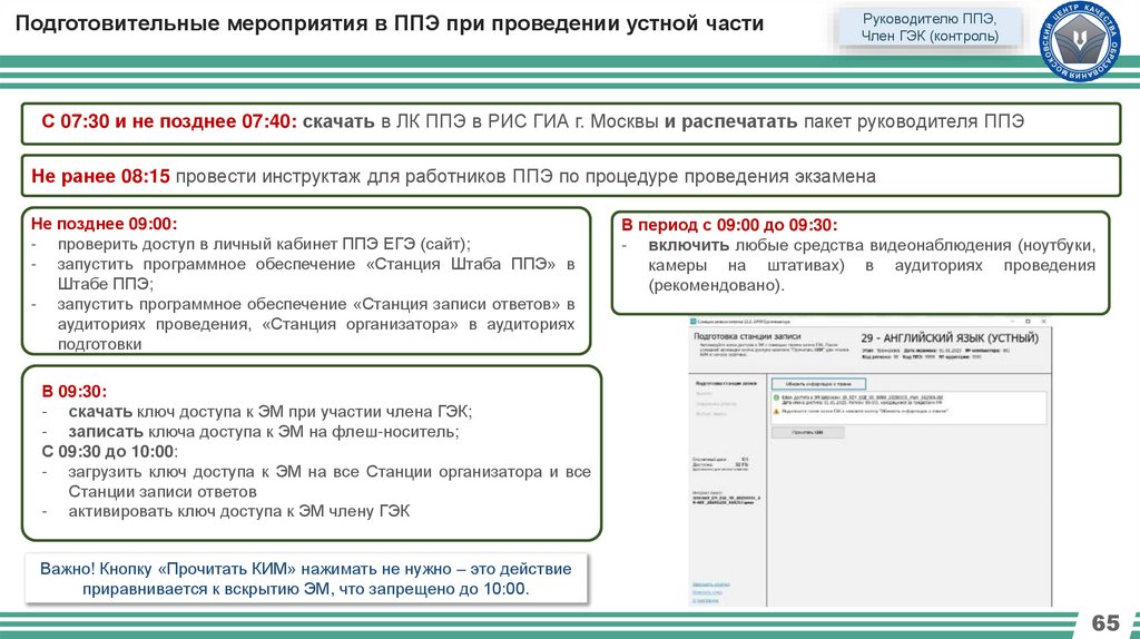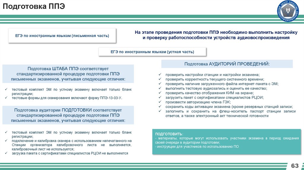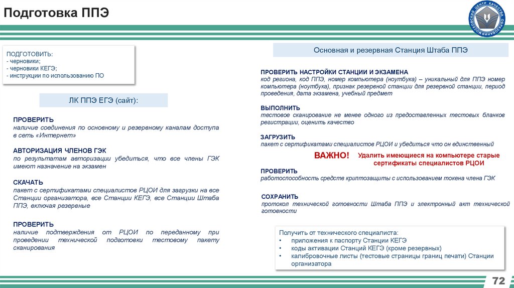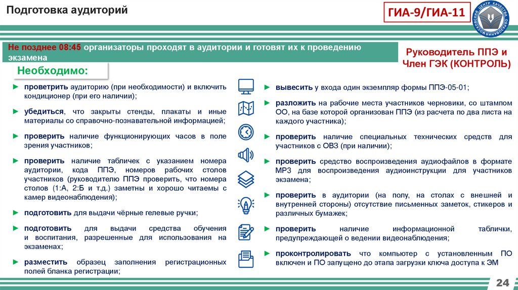 ПОДГОТОВКА ППЭК ПРОВЕДЕНИЮ