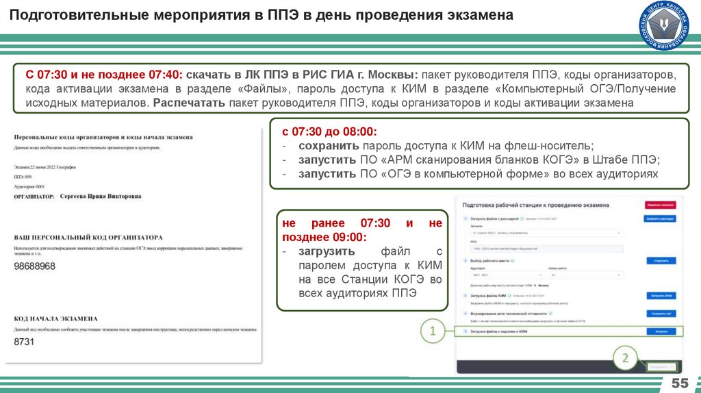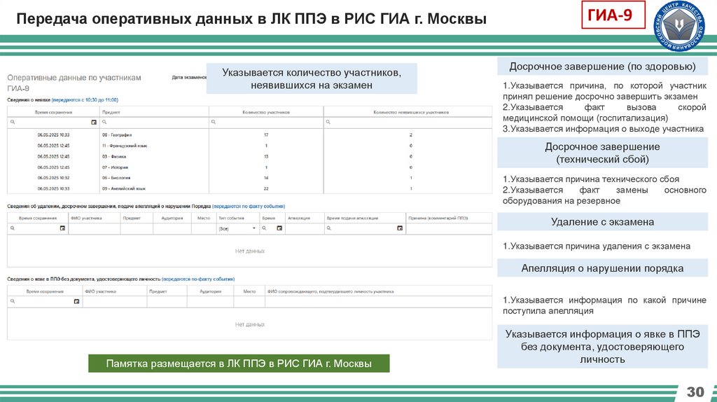 ППЭ (если не были переданы ранее) в ЛК ППЭ