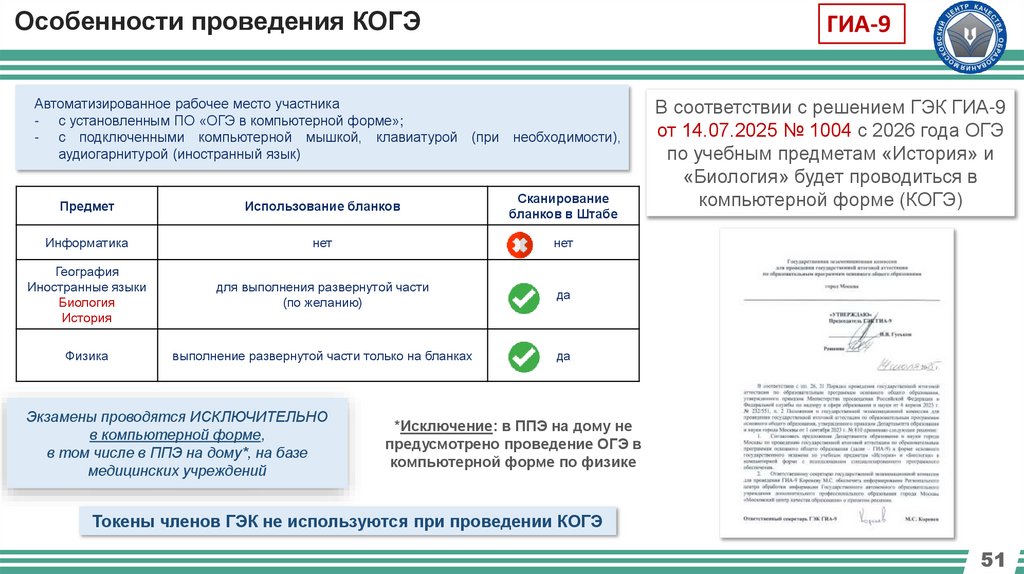 О проведении ОГЭ по биологии, истории в компьютерной форме (от 14.07.2025 №1004),