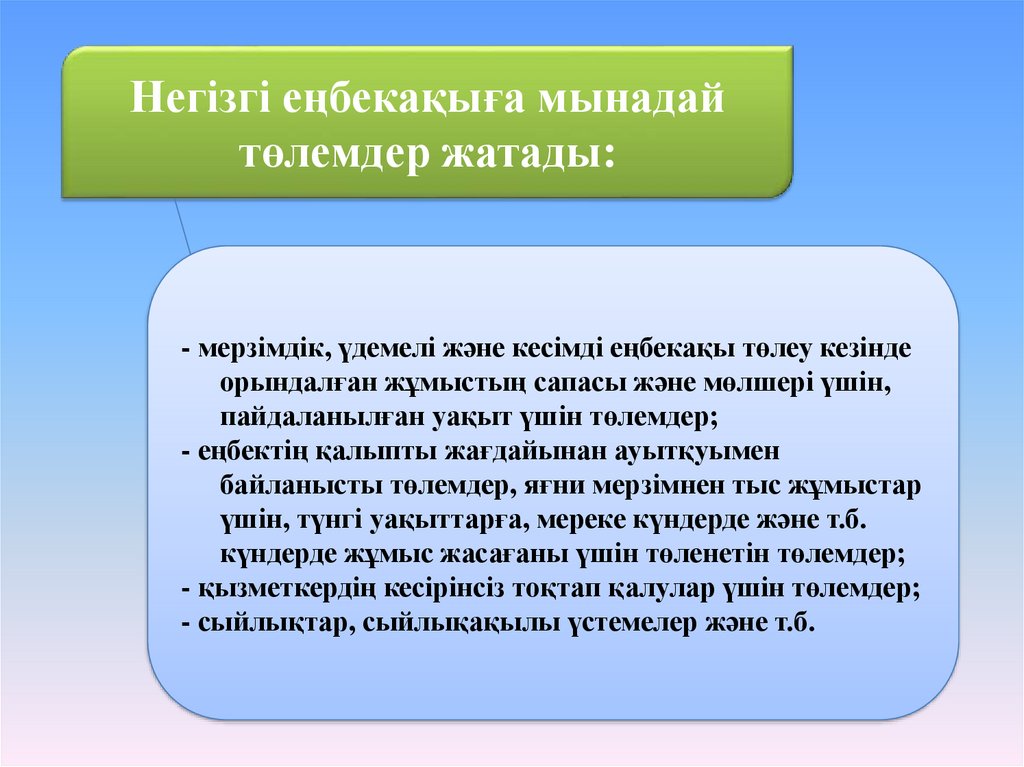 Негізгі еңбекақыға мынадайтөлемдер жатады: