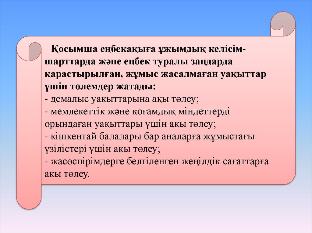 - демалыс уақыттарына ақы төлеу;