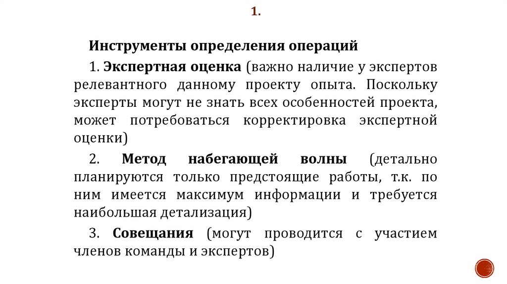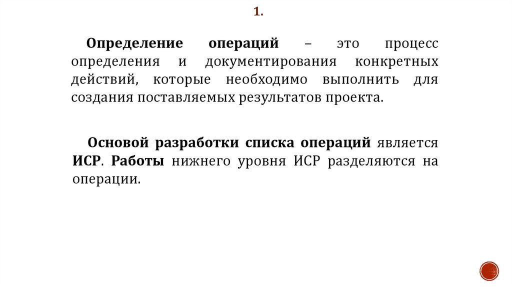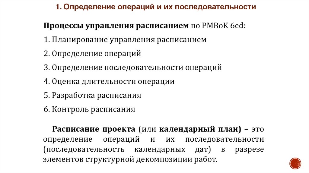 1. Определение операций и их последовательностиПроцессы управления расписанием по PMBоK 6ed: