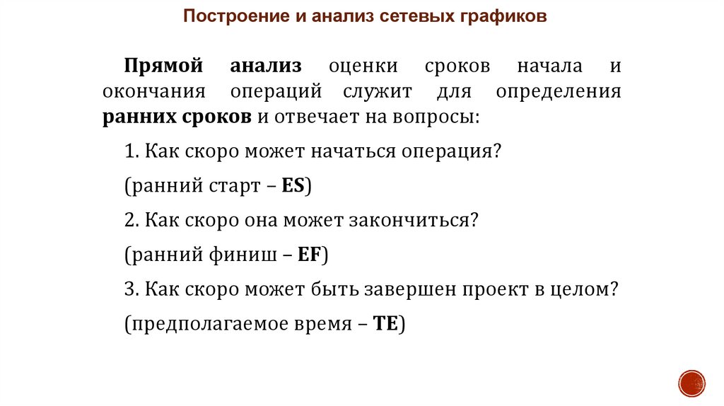 Анализ PERT позволяет определить ожидаемую (tE) длительность