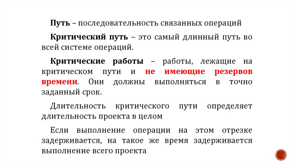 Путь – последовательность связанных операцийКритический путь – это самый длинный путь во