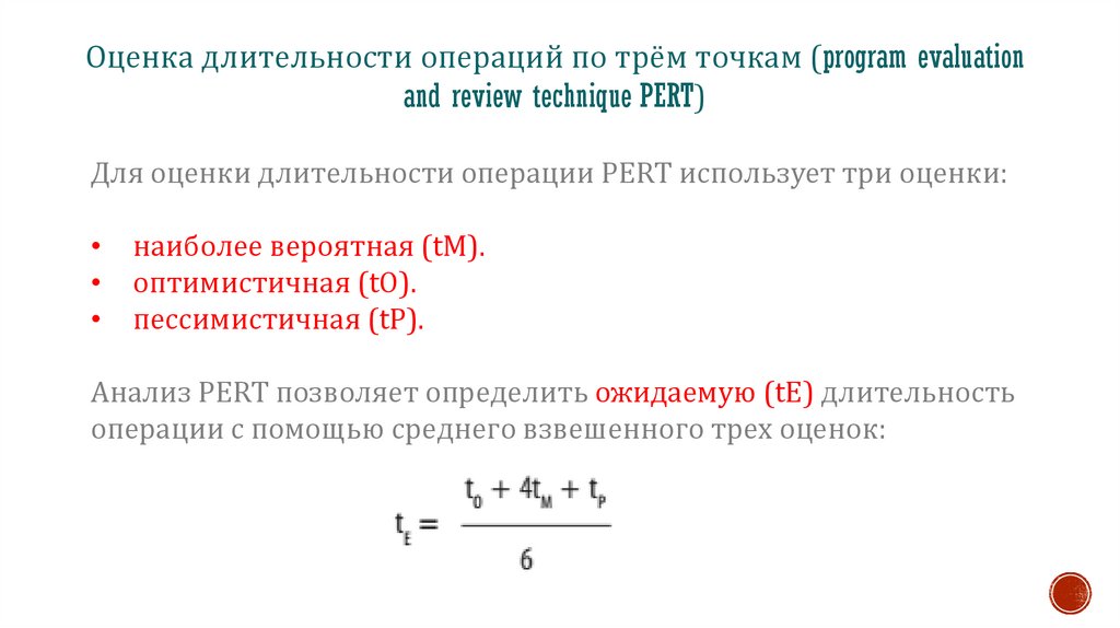 Оценка длительности операций по трём точкам (program evaluationand review technique PERT)