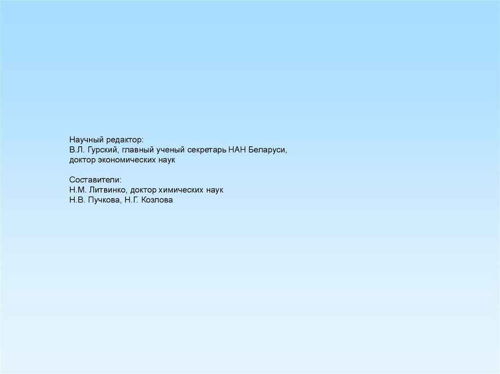 Научный редактор:В.Л. Гурский, главный ученый секретарь НАН Беларуси,