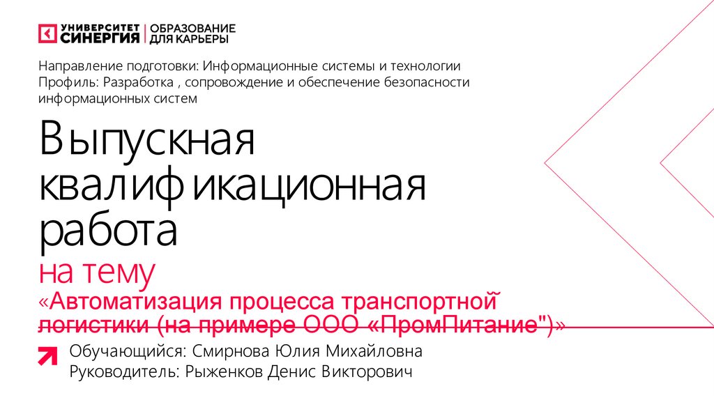Направление подготовки: Информационные системы и технологииПрофиль: Разработка , сопровождение и обеспечение безопасности