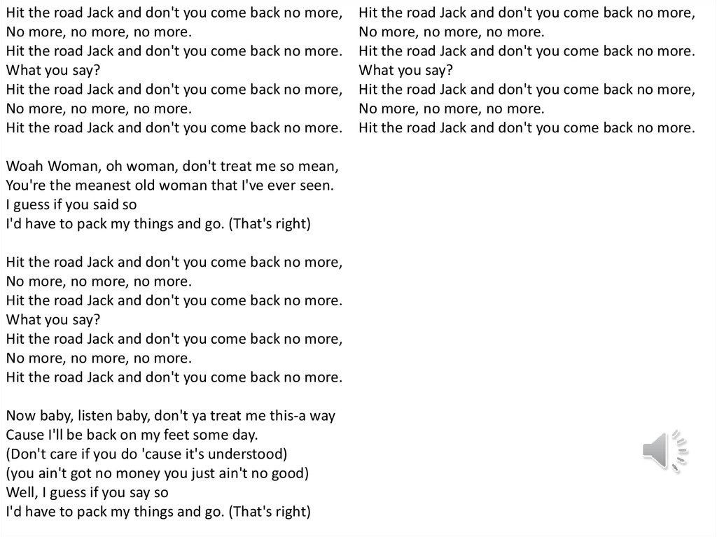 Hit the road Jack and don't you come back no more,No more, no more, no more.