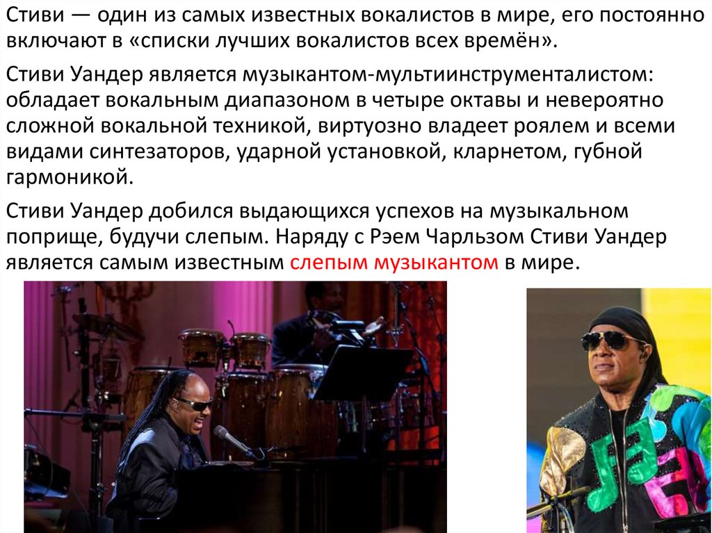 поприще, будучи слепым. Наряду с Рэем Чарльзом Стиви Уандер