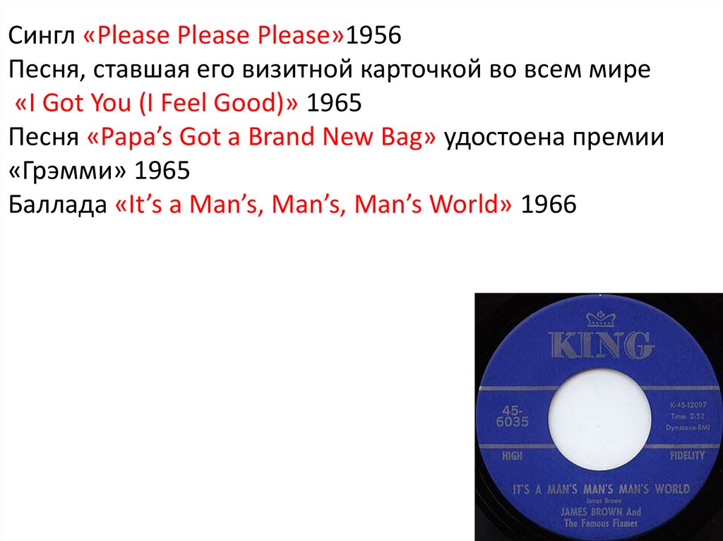Сингл «Please Please Please»1956Песня, ставшая его визитной карточкой во всем мире