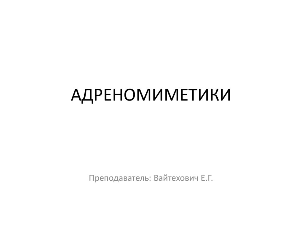 Преподаватель: Вайтехович Е.Г.2. СРЕДСТВА, СТИМУЛИРУЮЩИЕ АДРЕНОРЕЦЕПТОРЫ (АДРЕНОМИМЕТИКИ)