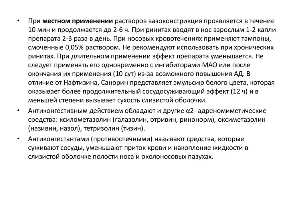 Антиконгестивным действием обладают и другие α2- адреномиметические