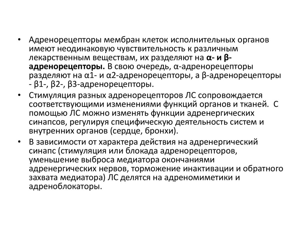 лекарственным веществам, их разделяют на α- и βадренорецепторы. В свою очередь, α-адренорецепторы