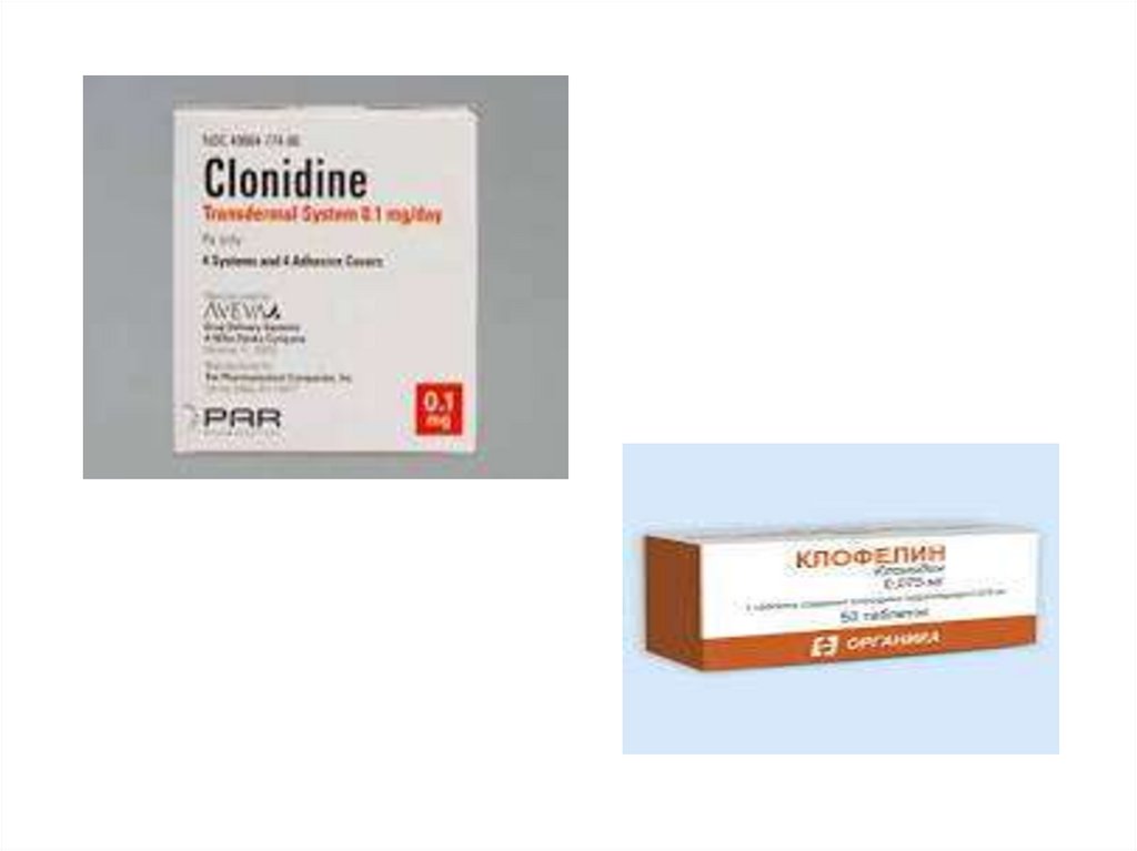 (вазомоторных) центров головного мозга, клонидин, гуанфацин - применяют при
