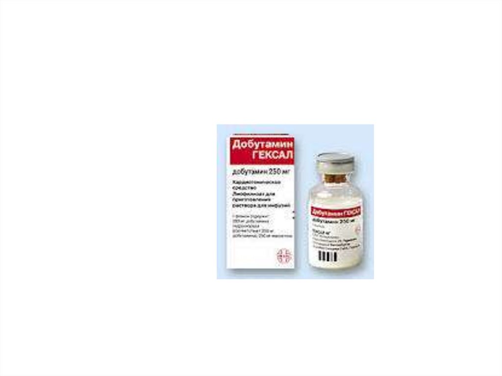 • Добутамин (Добутрекс) избирательно стимулирует β1-адренорецепторы миокарда.• Практически не влияет на α-адренорецепторы сосудов и системное