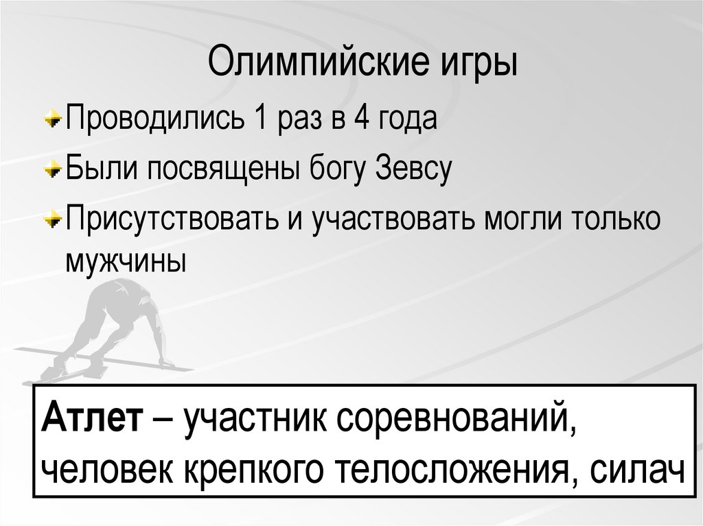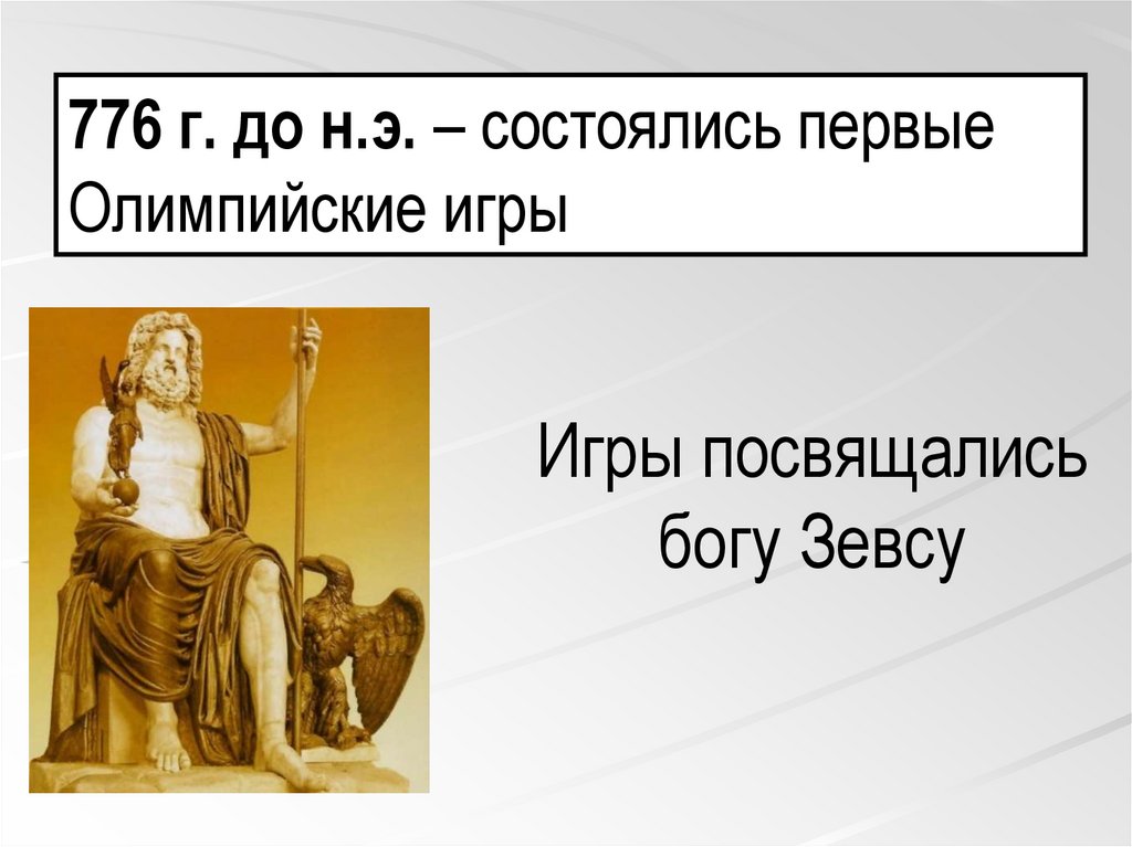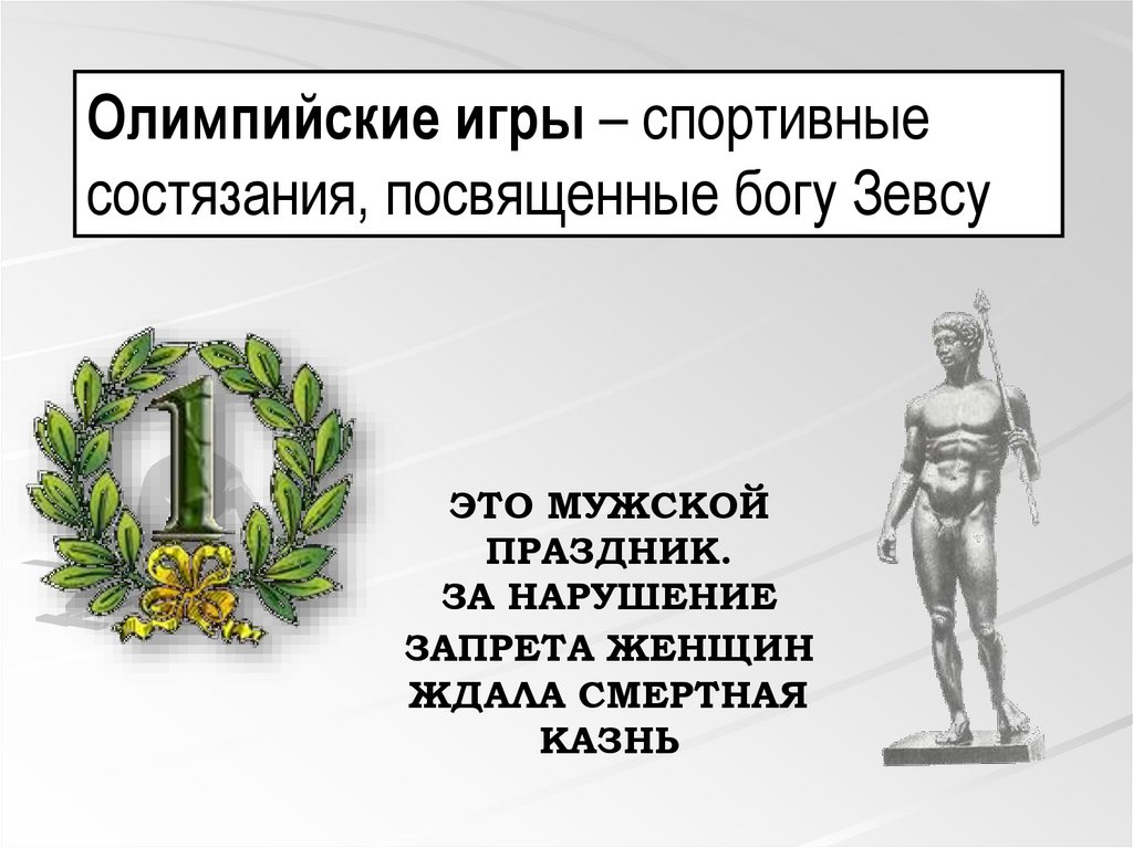 Олимпийские игры – спортивныесостязания, посвященные богу Зевсу