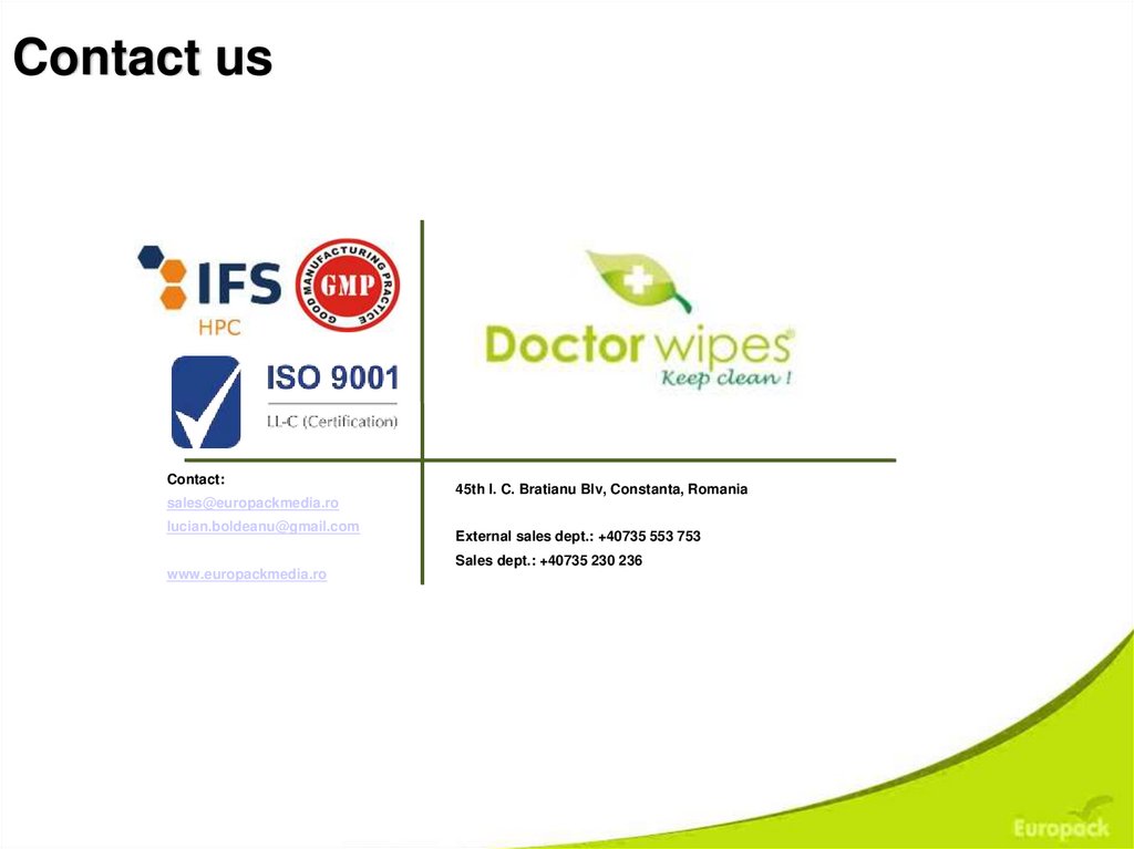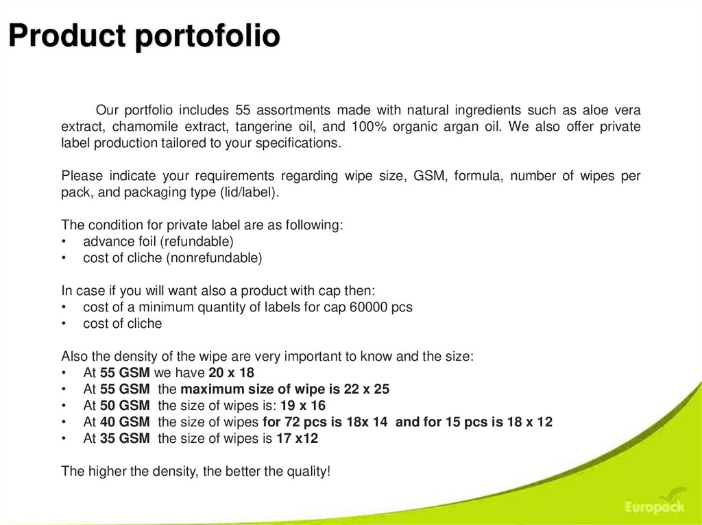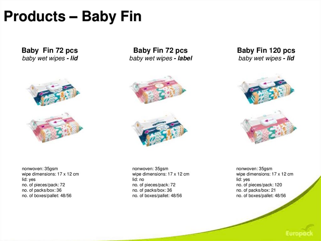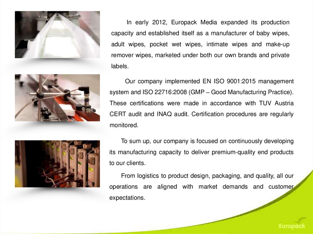 In early 2012, Europack Media expanded its productioncapacity and established itself as a manufacturer of baby wipes,