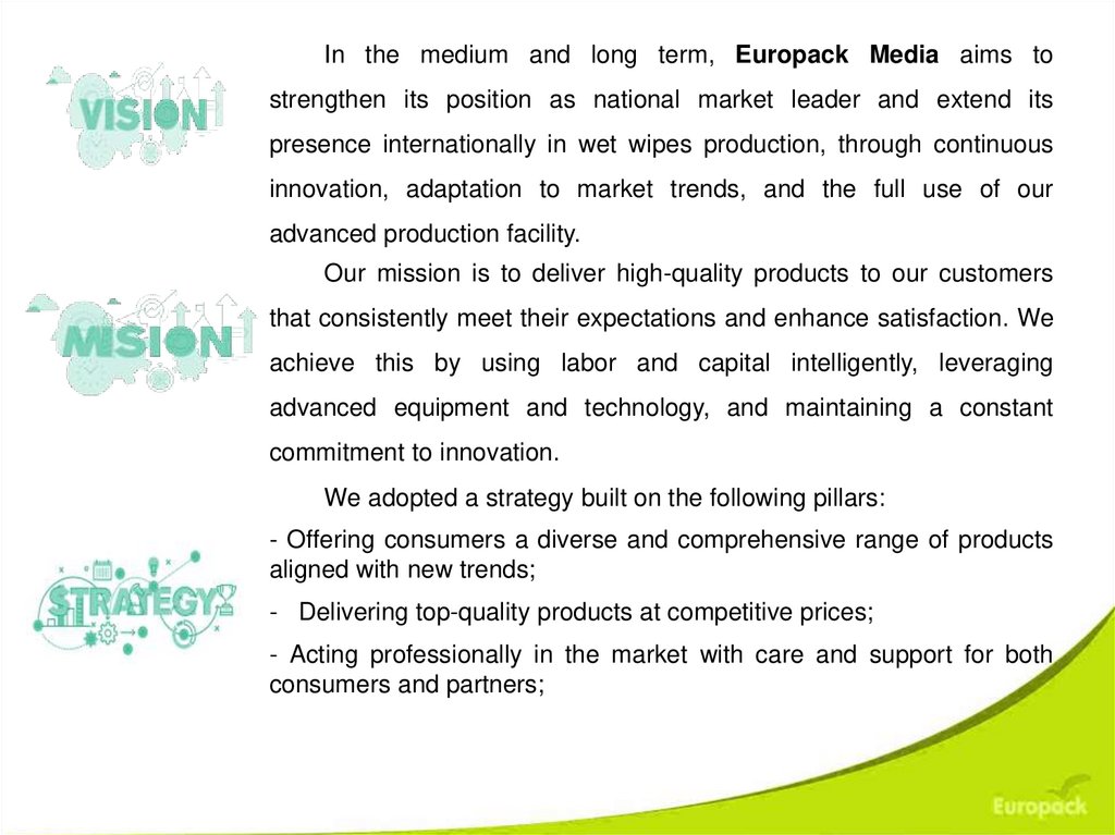 In the medium and long term, Europack Media aims tostrengthen its position as national market leader and extend its