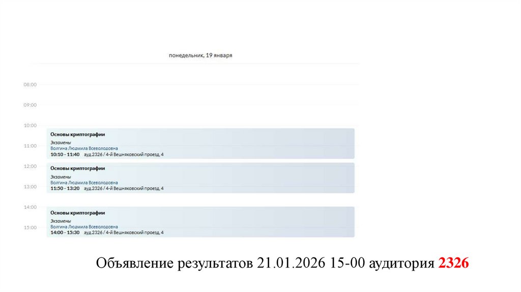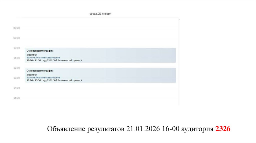 Объявление результатов 21.01.2026 15-00 аудитория 23264.