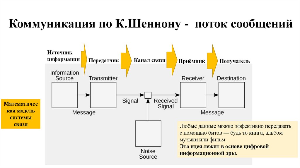 Коммуникация по К.Шеннону - поток сообщенийИсточник