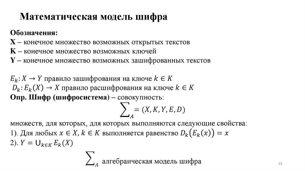 Математическая модель шифраОбозначения: