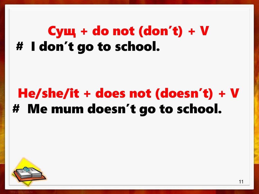 Сущ + do not (don’t) + V# I don’t go to school.