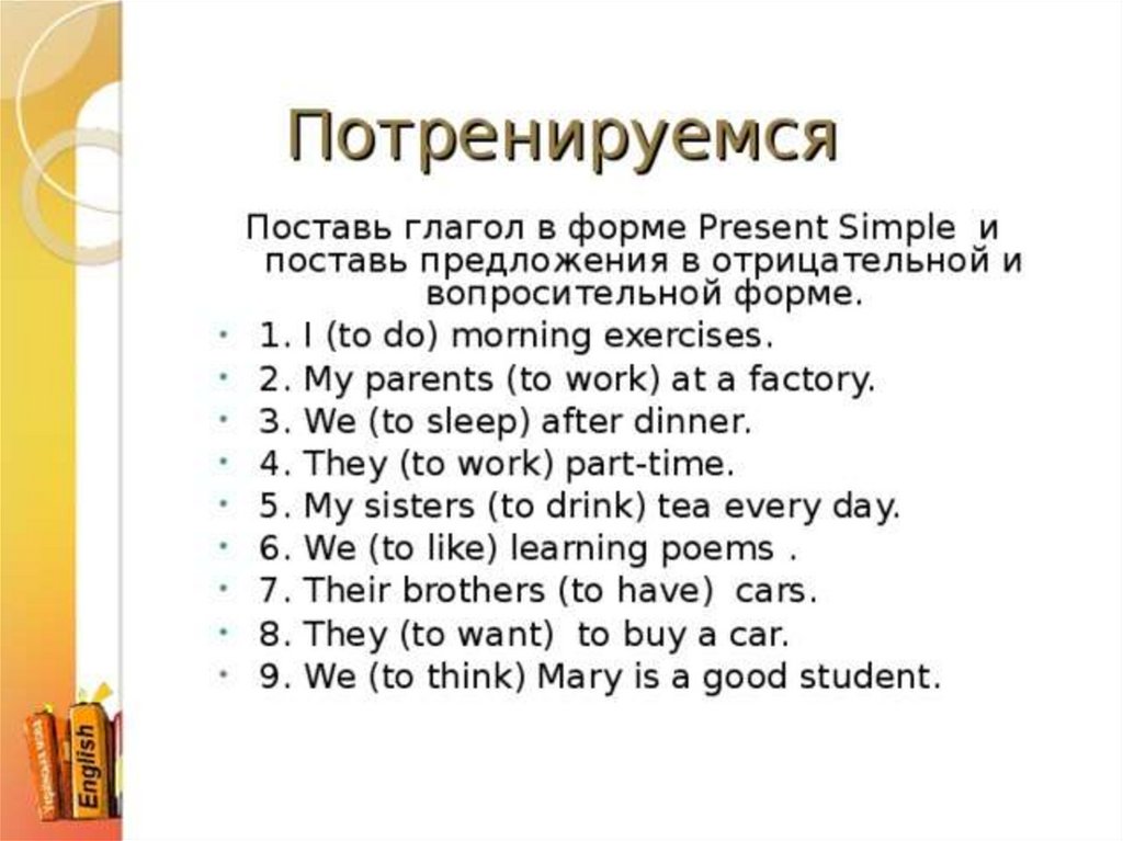 №1. Открой скобки, употребляя глаголы в Present Simple.1.