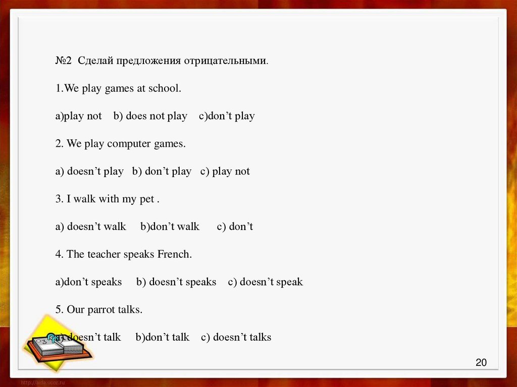 №2. Сделай предложения отрицательными.1.We play games at school.