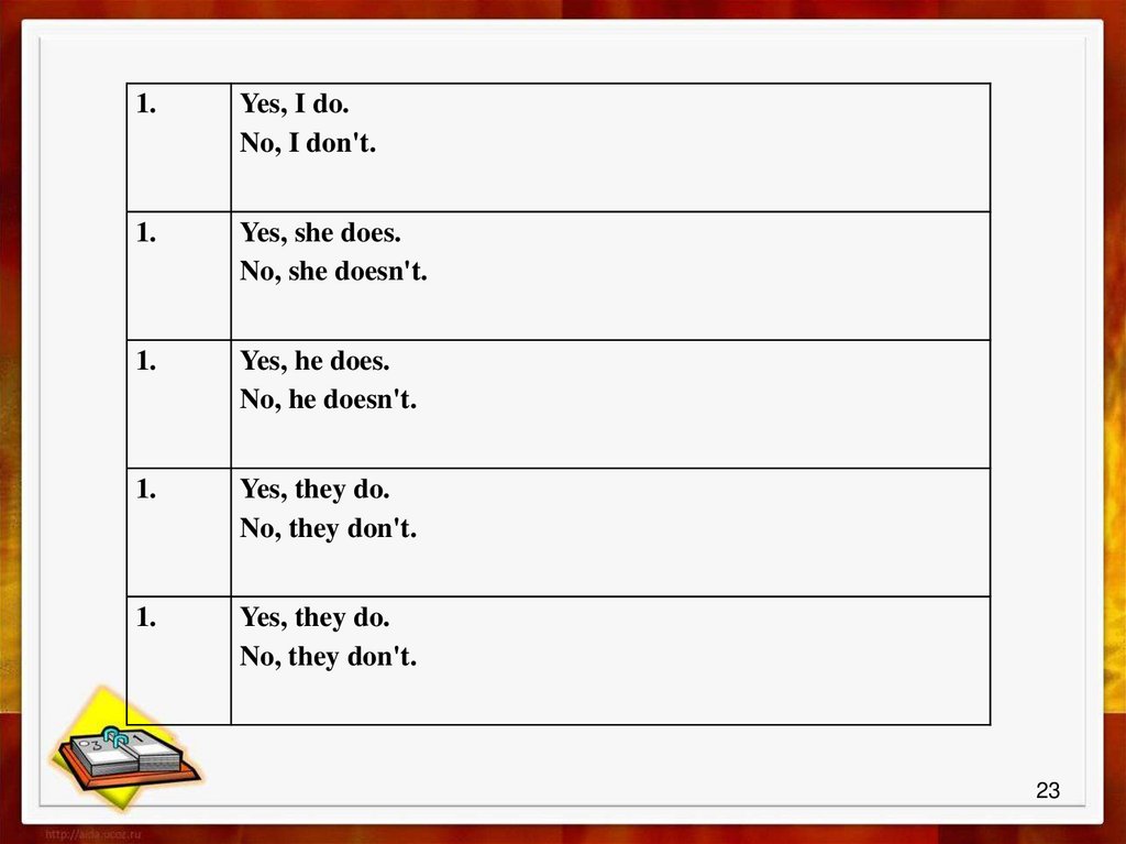 Do + cущ + V?# Do I go to school? – Yes, I do/